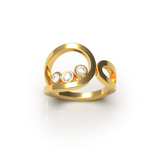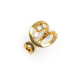 La Anillo Loop Trio es una verdadera escultura de luz. Como una cinta de oro de 18 quilates en movimiento, se enrolla alrededor del dedo para crear un efecto de volumen aéreo y sofisticado.