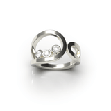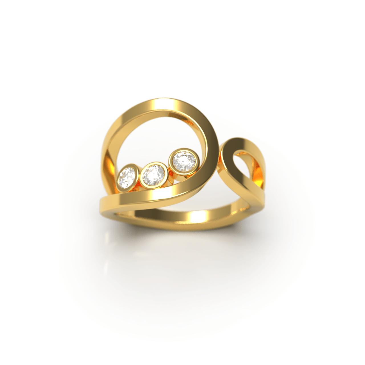Punteada con 3 diamantes blancos en suspensión, este anillo da la ilusión perfecta de una acumulación (stacking) de varios aros, ofreciendo al mismo tiempo la comodidad de una pieza única. Es la joya ""statement"" por excelencia, a la vez presente y ligera.