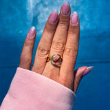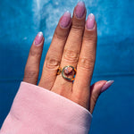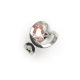 Questa costruzione originale, in cui la castone è saldata lateralmente al corpo dell'anello, permette alla pietra di posizionarsi perfettamente nella curva della loop. La tonalità "Fancy Pink" dona una dolcezza romantica a questo design contemporaneo.