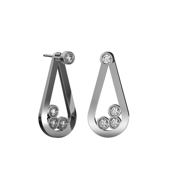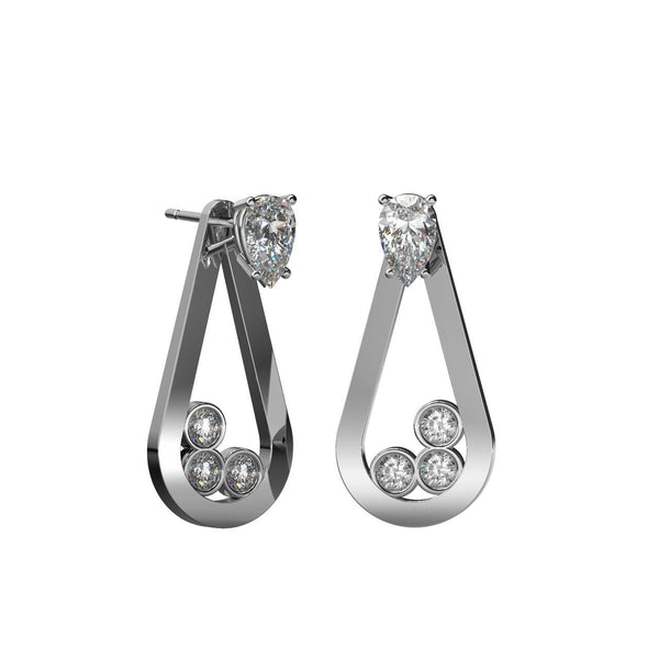 Chaque paire est fabriquée à la main en France. La technicité des articulations entre chaque diamant du trio garantit une fluidité parfaite, comme une goutte d'eau qui ruisselle le long du cou.