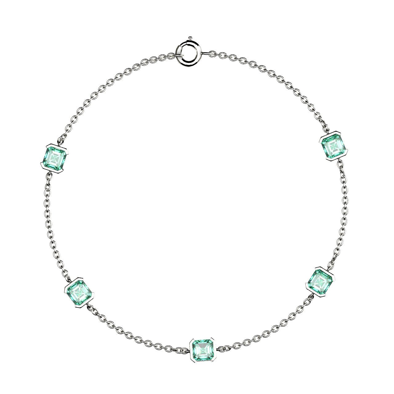 Le Bracelet Faubourg 1925 se distingue par sa singularité. Il met en valeur une suite de 5 diamants verts taille Asscher, une teinte symbolisant le renouveau, encadrée par un design résolument urbain.